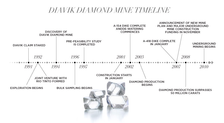 Diavik began producing diamonds in January 2003, and the Company sold its first rough diamonds in March that year. Diavik diamonds are highly regarded in the international commercial marketplace. Most are one carat or larger, white in color and have good clarity, as well as being conflict-free.